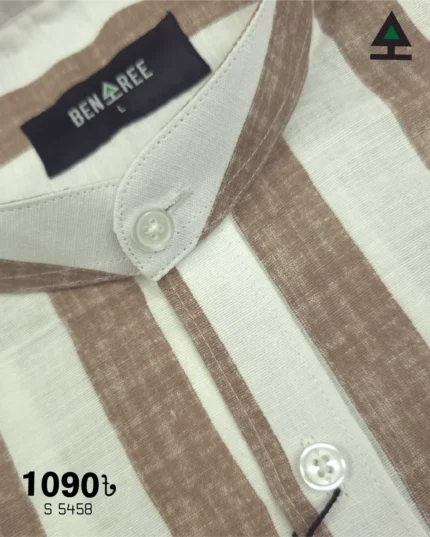 white and brown Ban Collar Shirt – 23S 5458