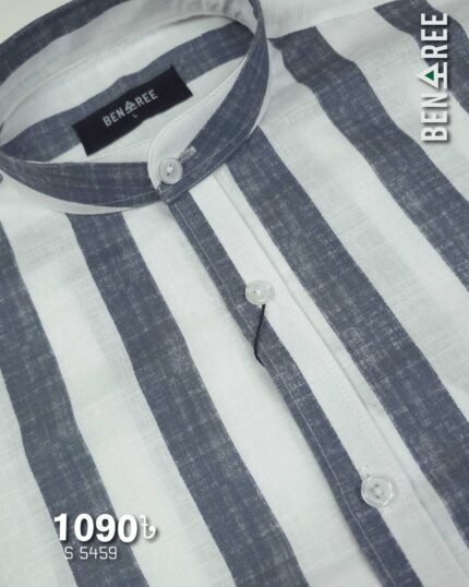 white and blue gray Ban Collar Shirt – 23S 5459