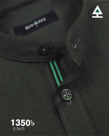 Deep Forest Green Ban Collar Shirt – 23S 5471