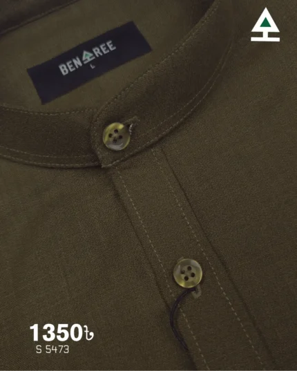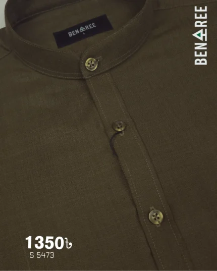 Deep Olive Brown Ban Collar Shirt – 23S 5473