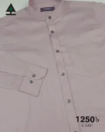 Solid color full sleeve ban collar shirt with styled Metal button and single pocket