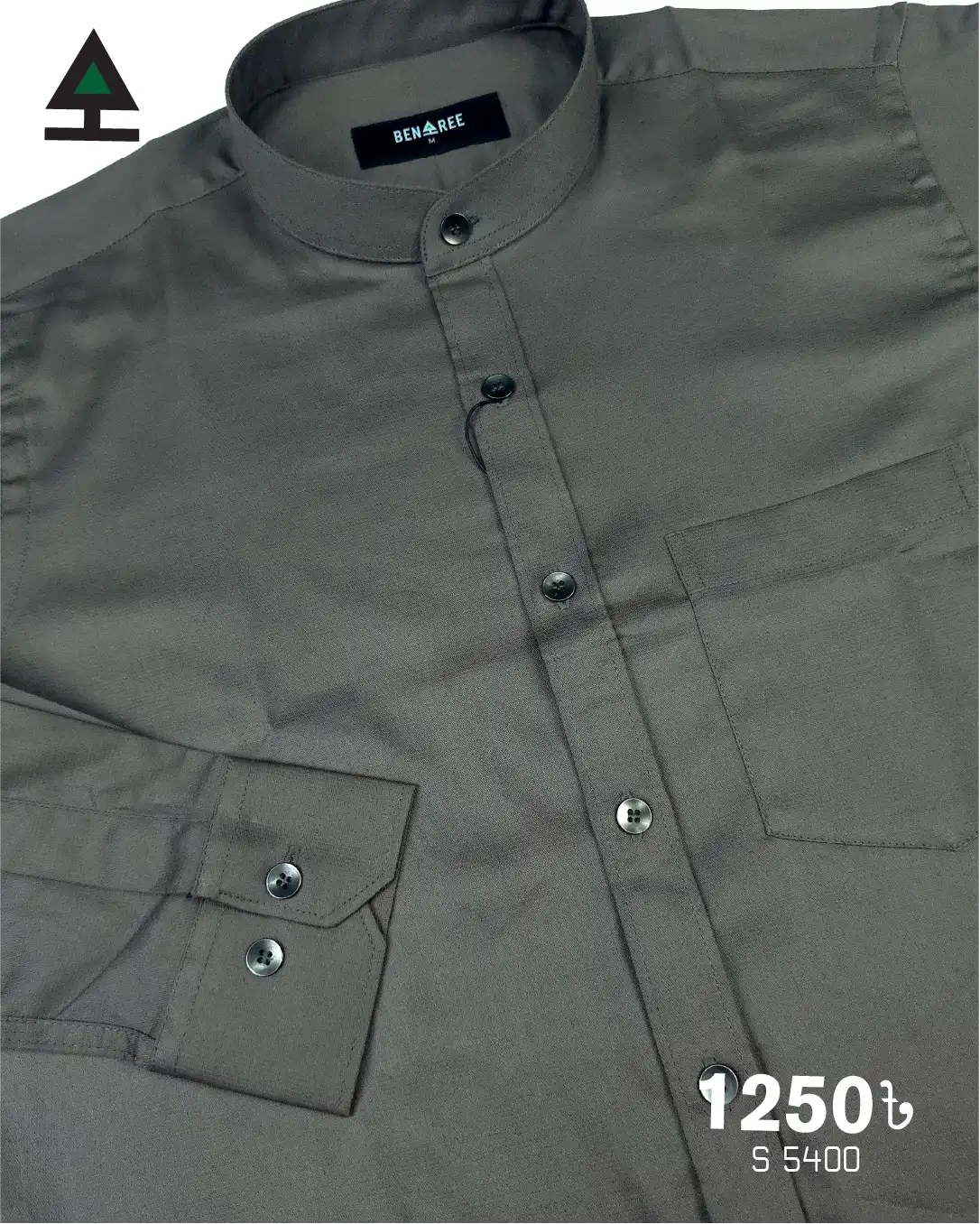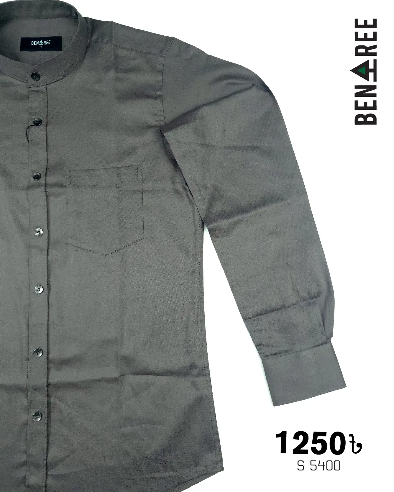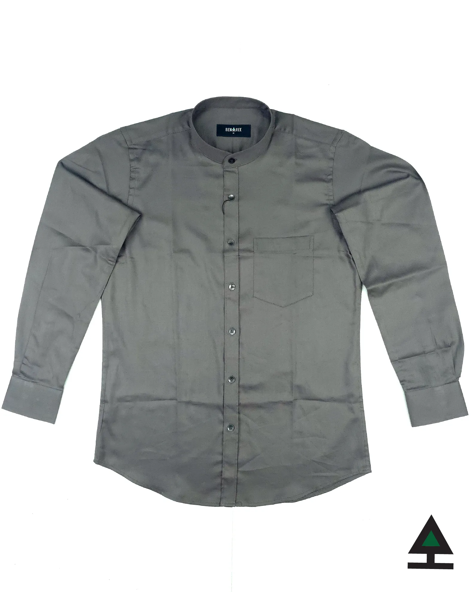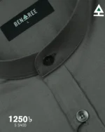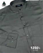 Solid color full sleeve ban collar shirt with styled Metal button and single pocket