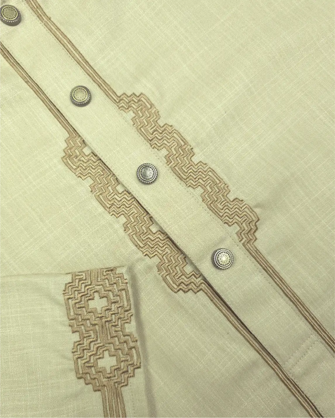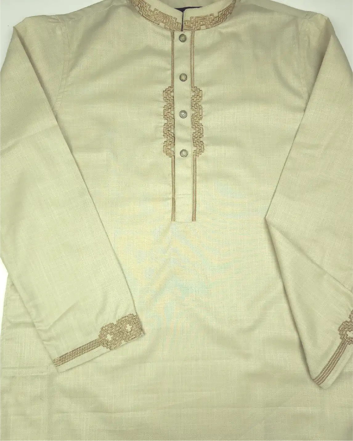 Designed with embroidery accents on cuff, plate & collar area, this Panjabi offers a refined festive look without excessive detailing.