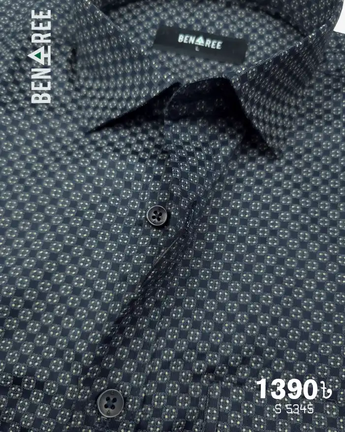 Full sleeve Deep Navy Blue color casual shirt with all over print on the body.
