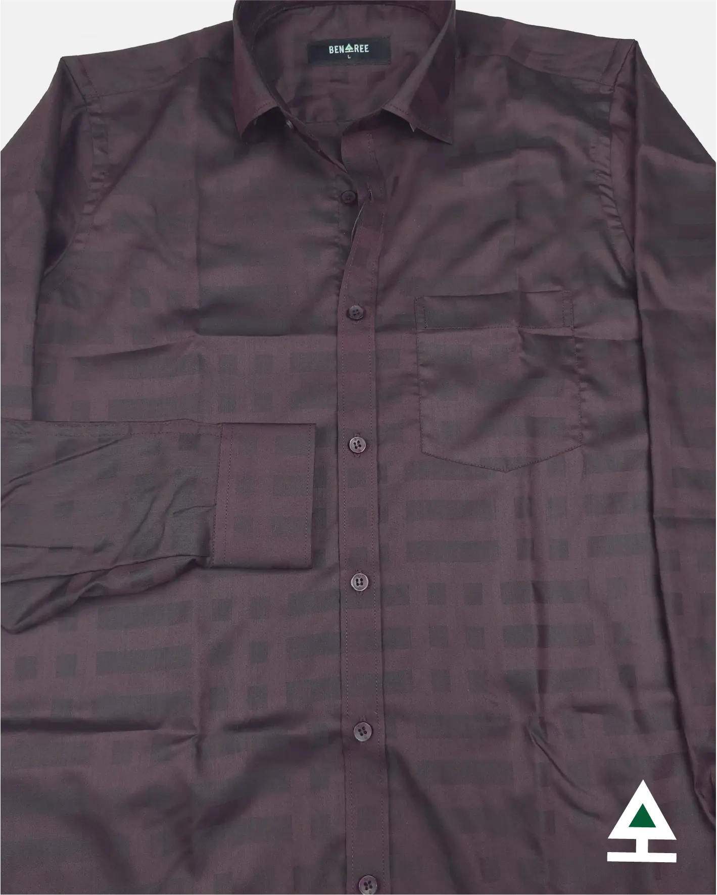 Full sleeve coffee bean color formal shirt with shaded black strokes on the body.