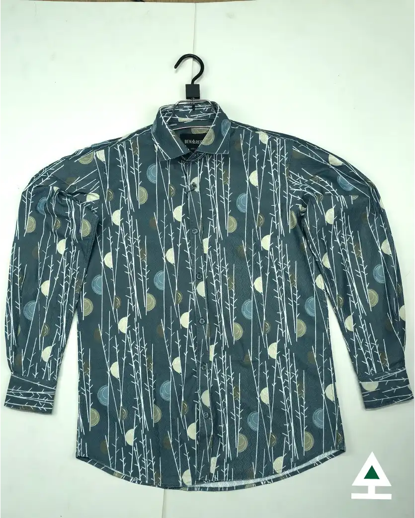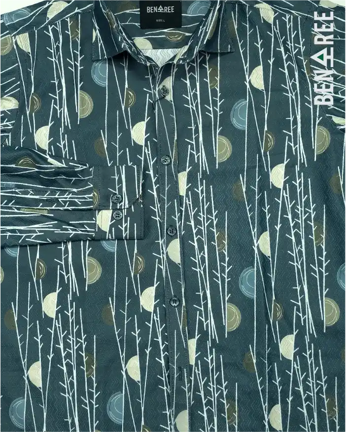All over print on bluish teal color full sleeve casual shirt