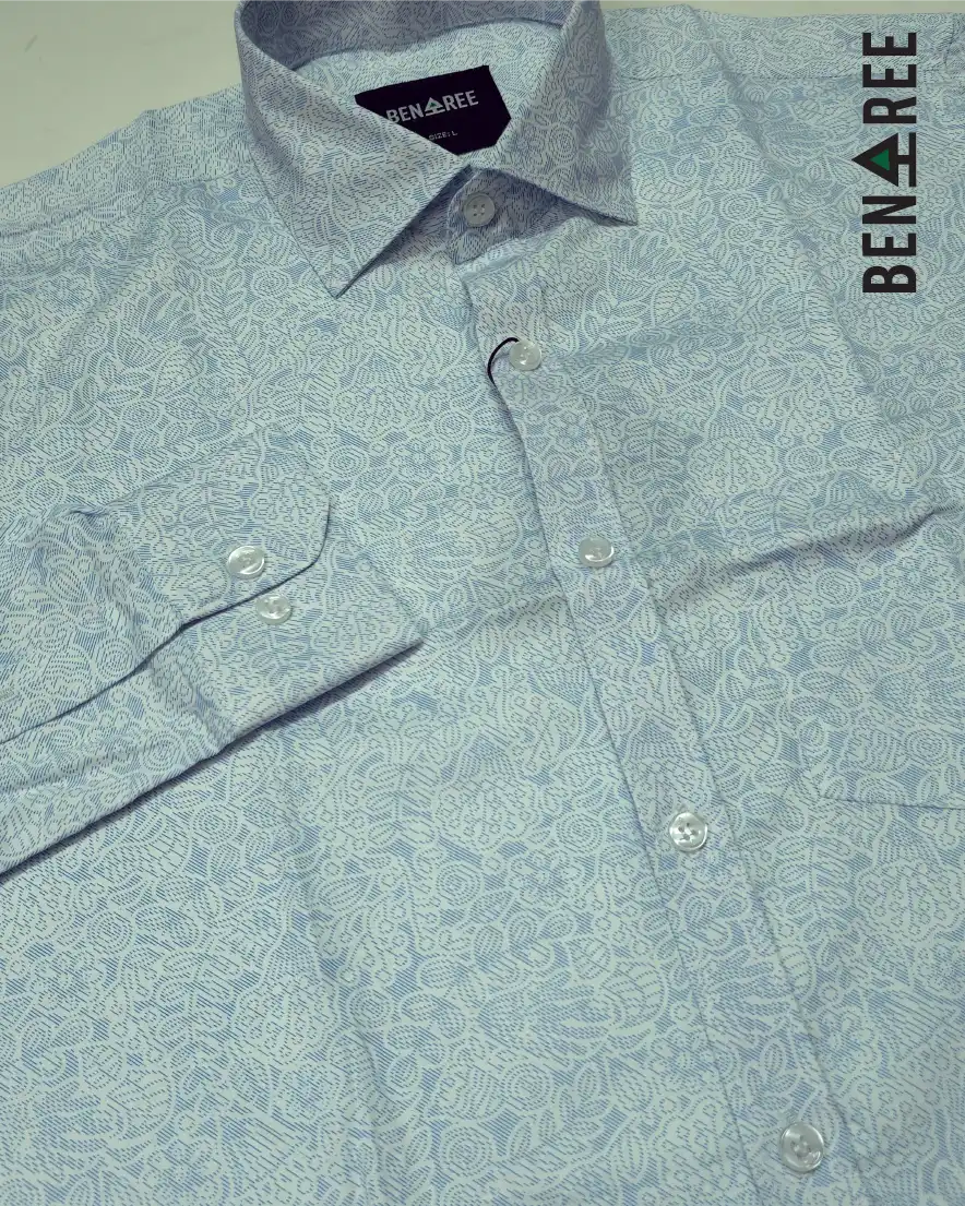 All over print on light blue & white color full sleeve casual shirt.