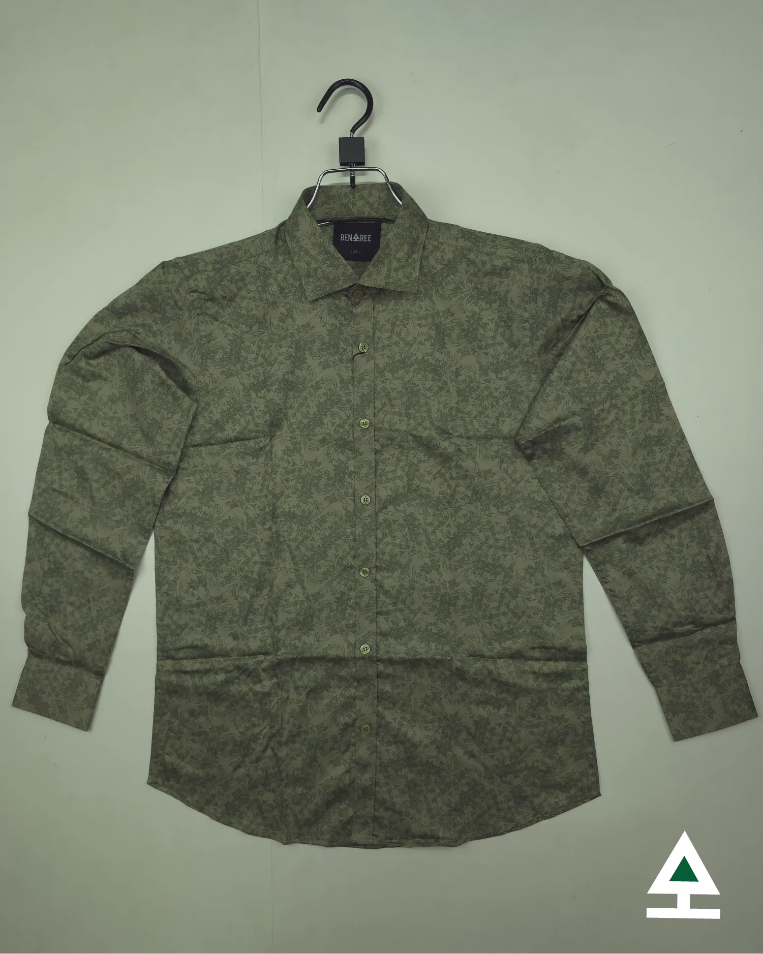 All over print on olive color full sleeve casual shirt.