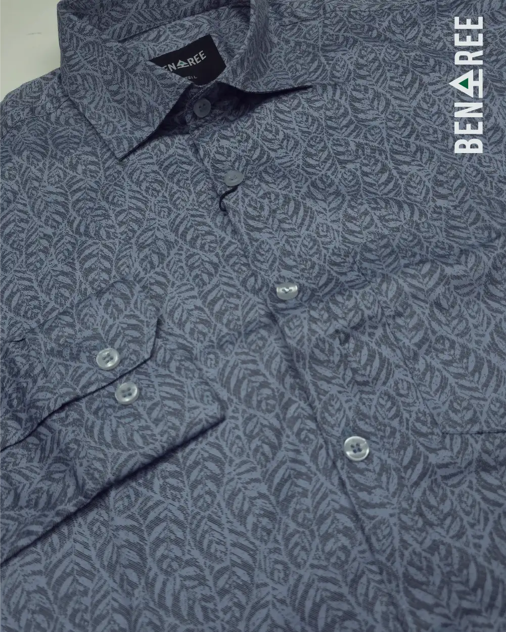 All over print on rustic blue color full sleeve casual shirt.