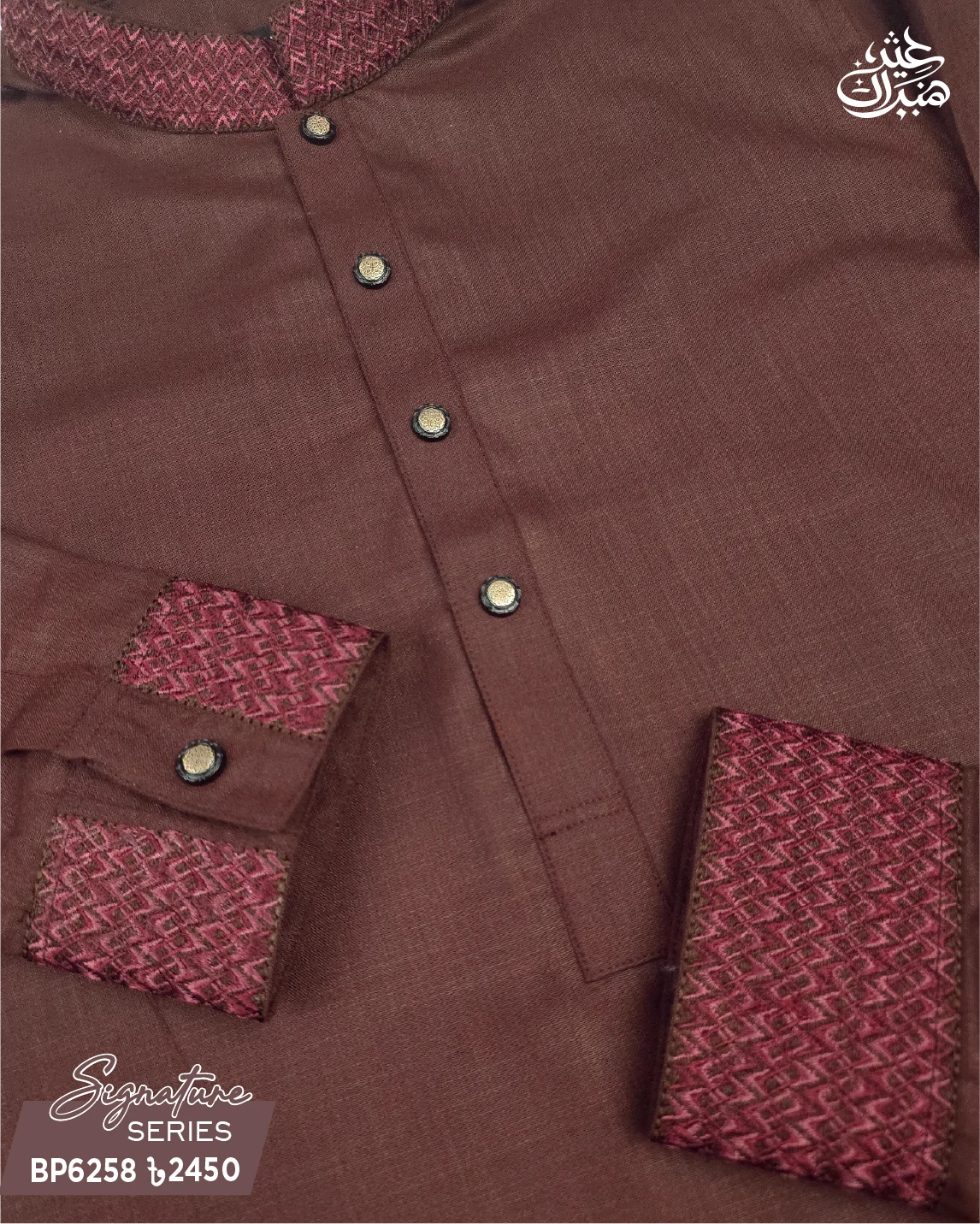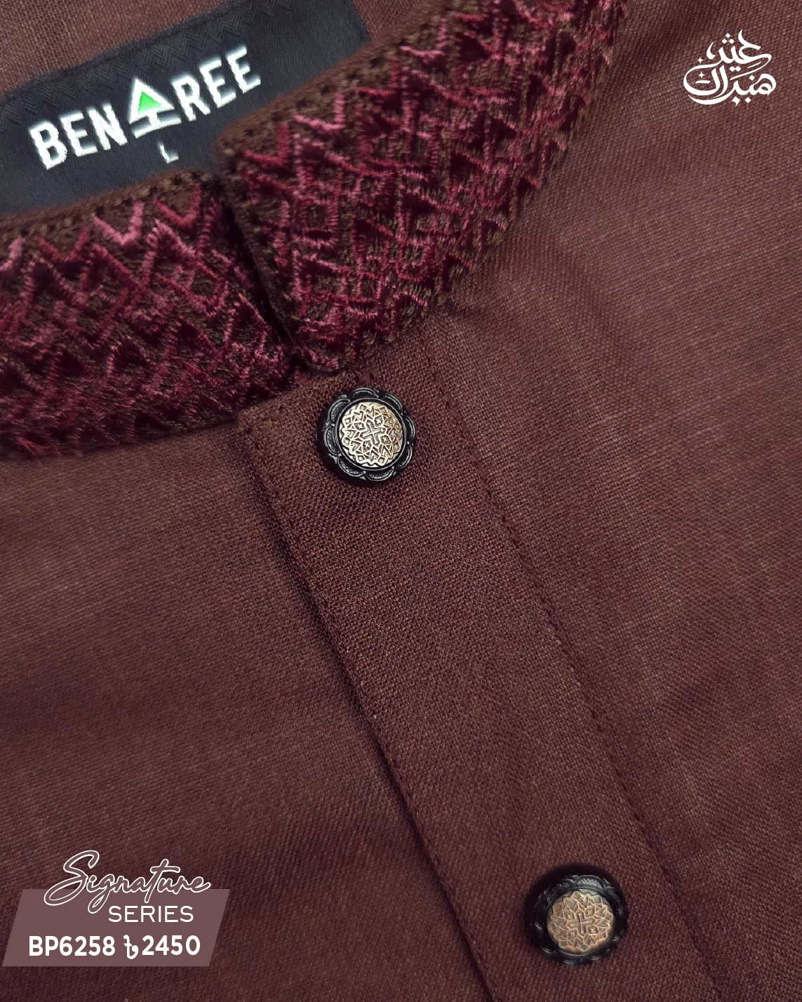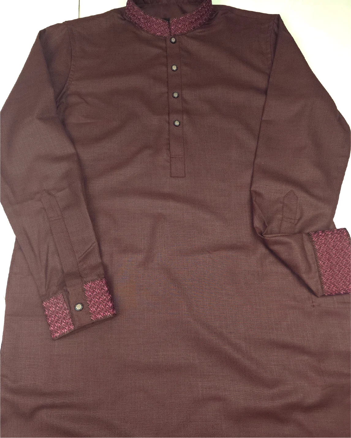 This Panjabi features tasteful embroidery on the neckline and cuff area, adding a touch of clean craftsmanship without overpowering the design.