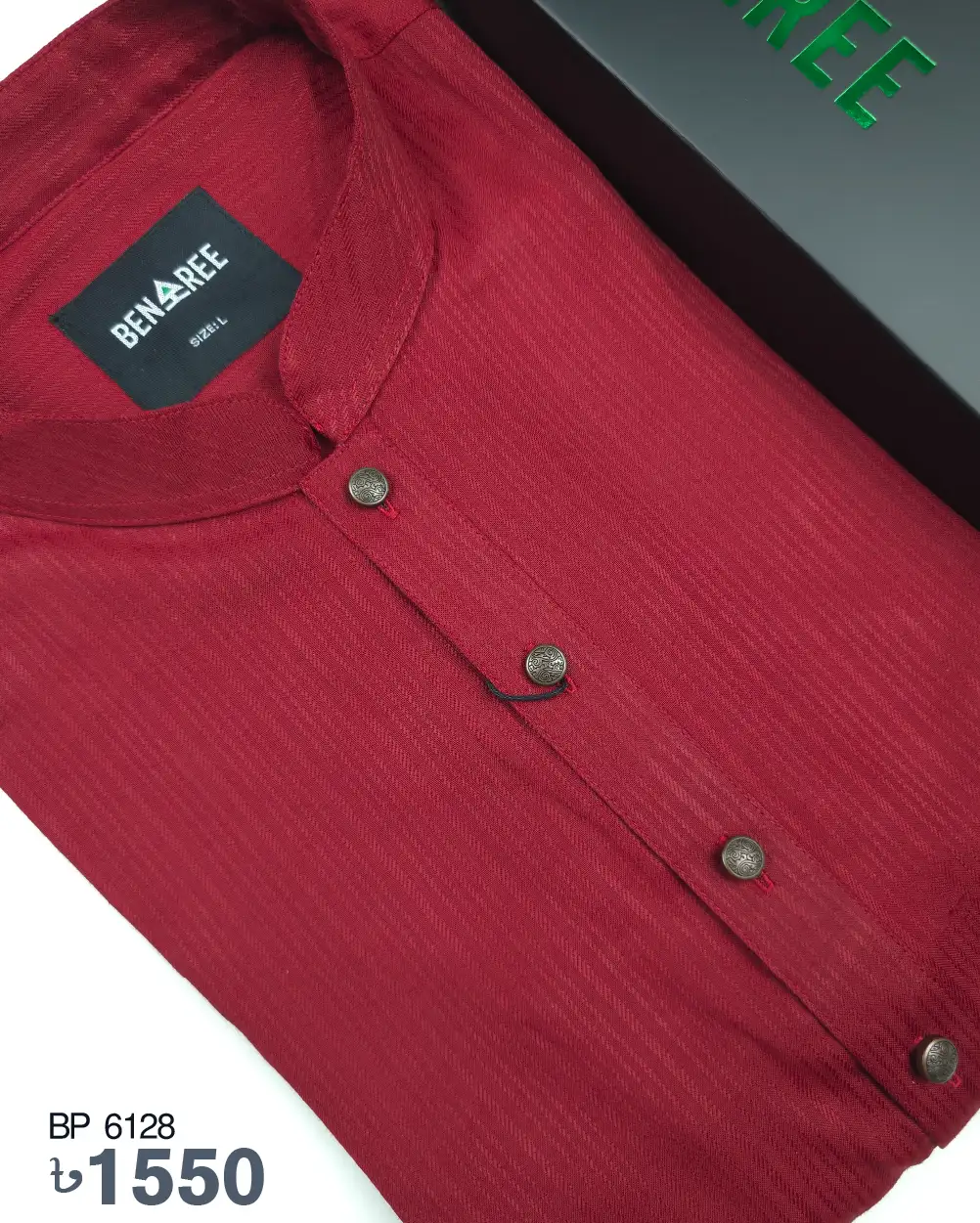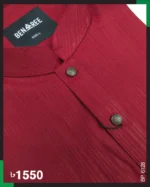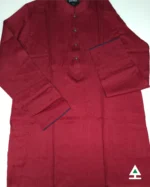 Classic solid color panjabi with on color vertical stripe on whole body. Metal button on the plate adds a pristine look to it.