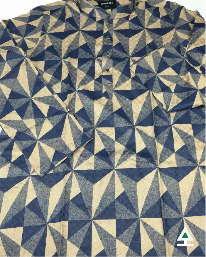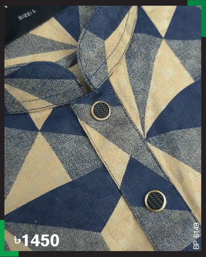 Medevial joker pattern designed navy blue color panjabi with Tan complements. The gesture of joker topped by fusion push button.