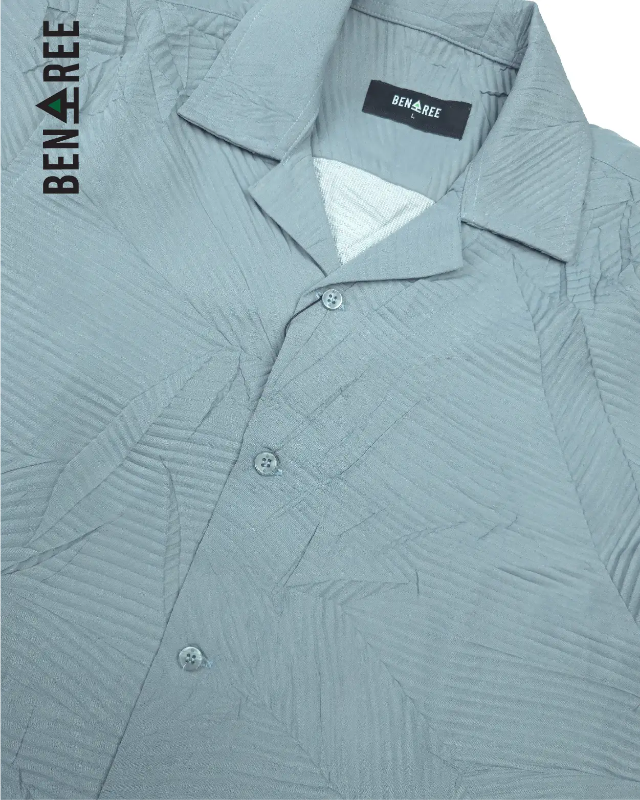 Metalic Grey color cuban collar shirt made with soft crush fabric.