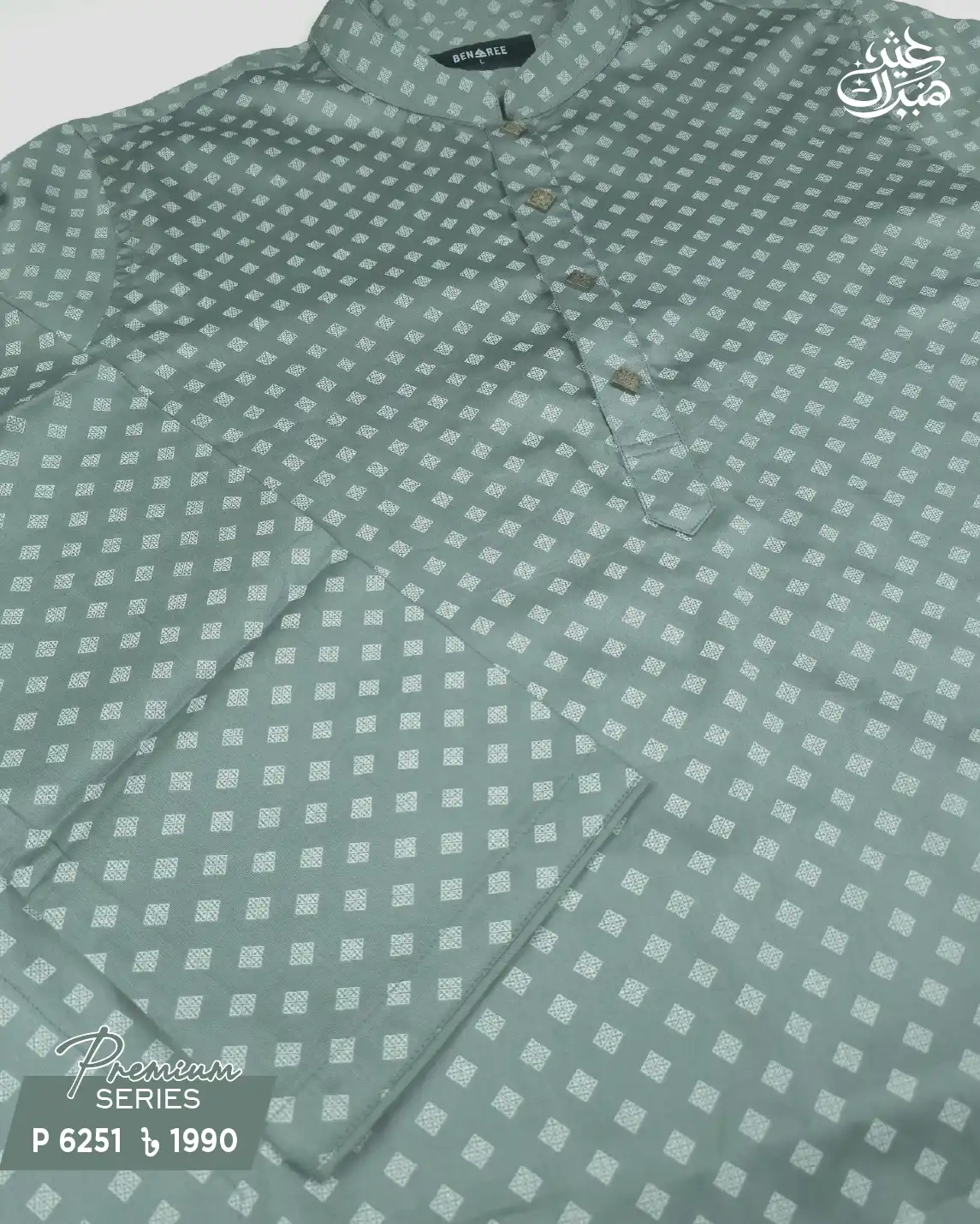 Made from fine cotton fabric, this Panjabi adds visual depth while remaining breathable and comfortable. The subtle weave elevates everyday ethnic wear.