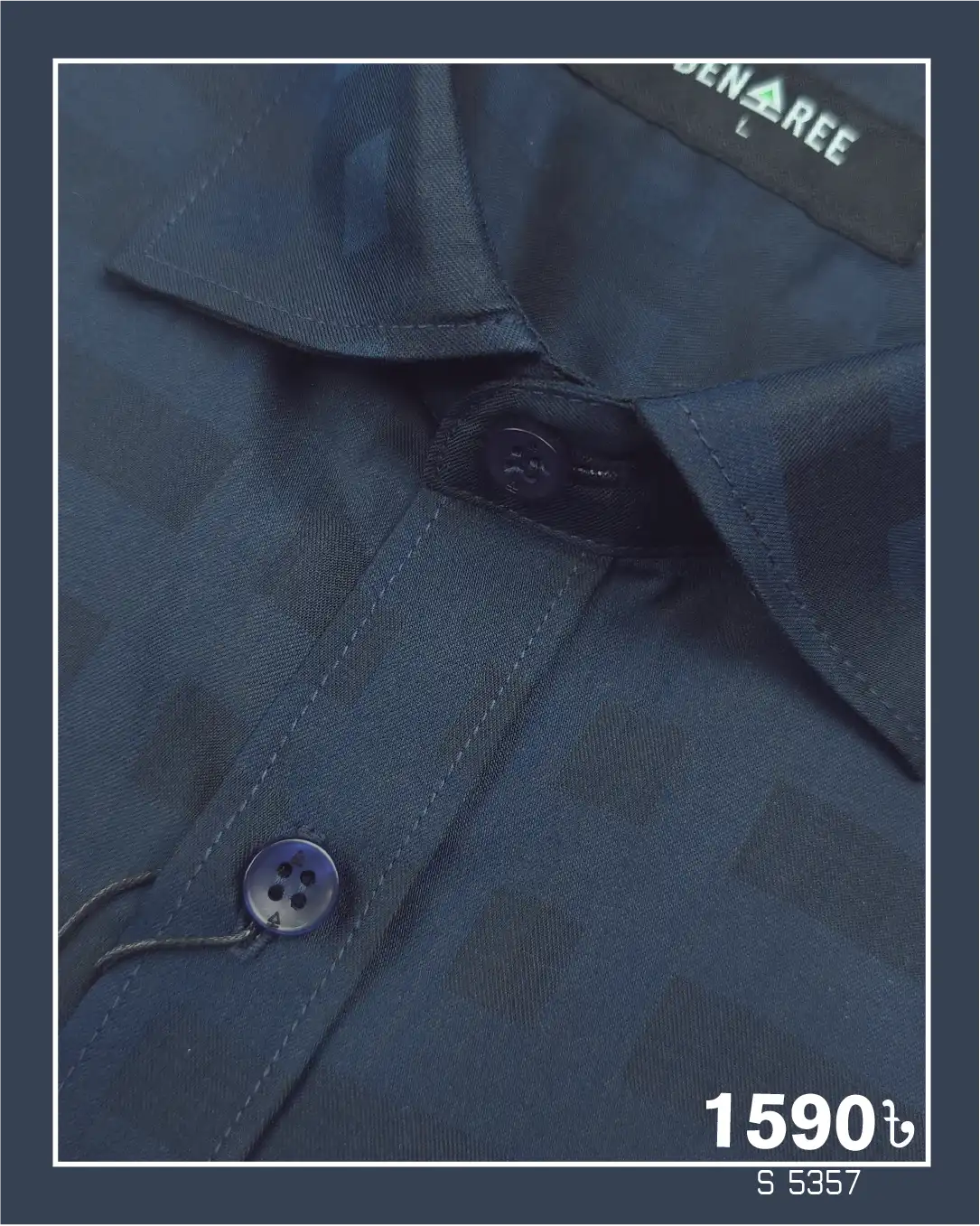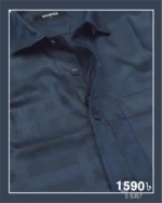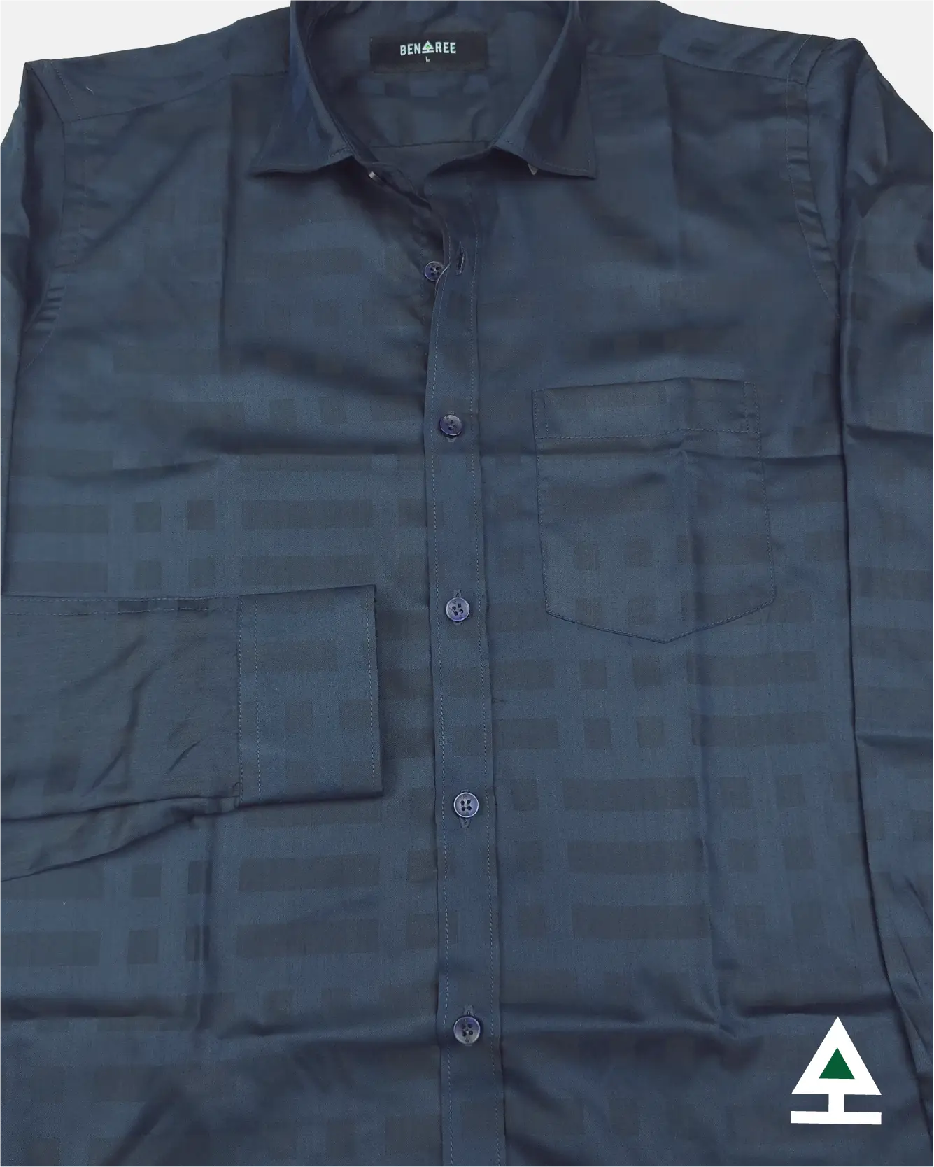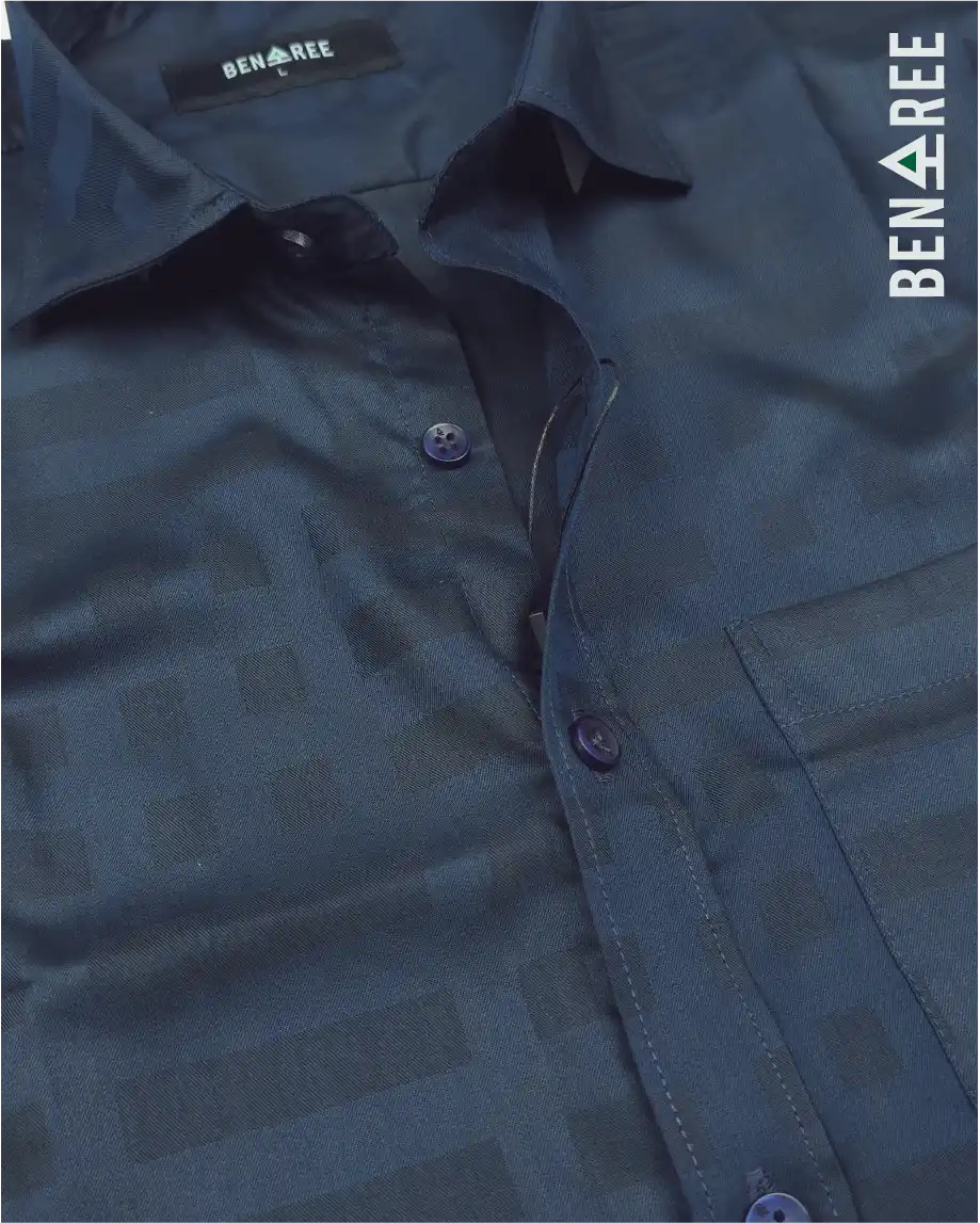 Full sleeve navy blue color formal shirt with shaded black strokes on the body.