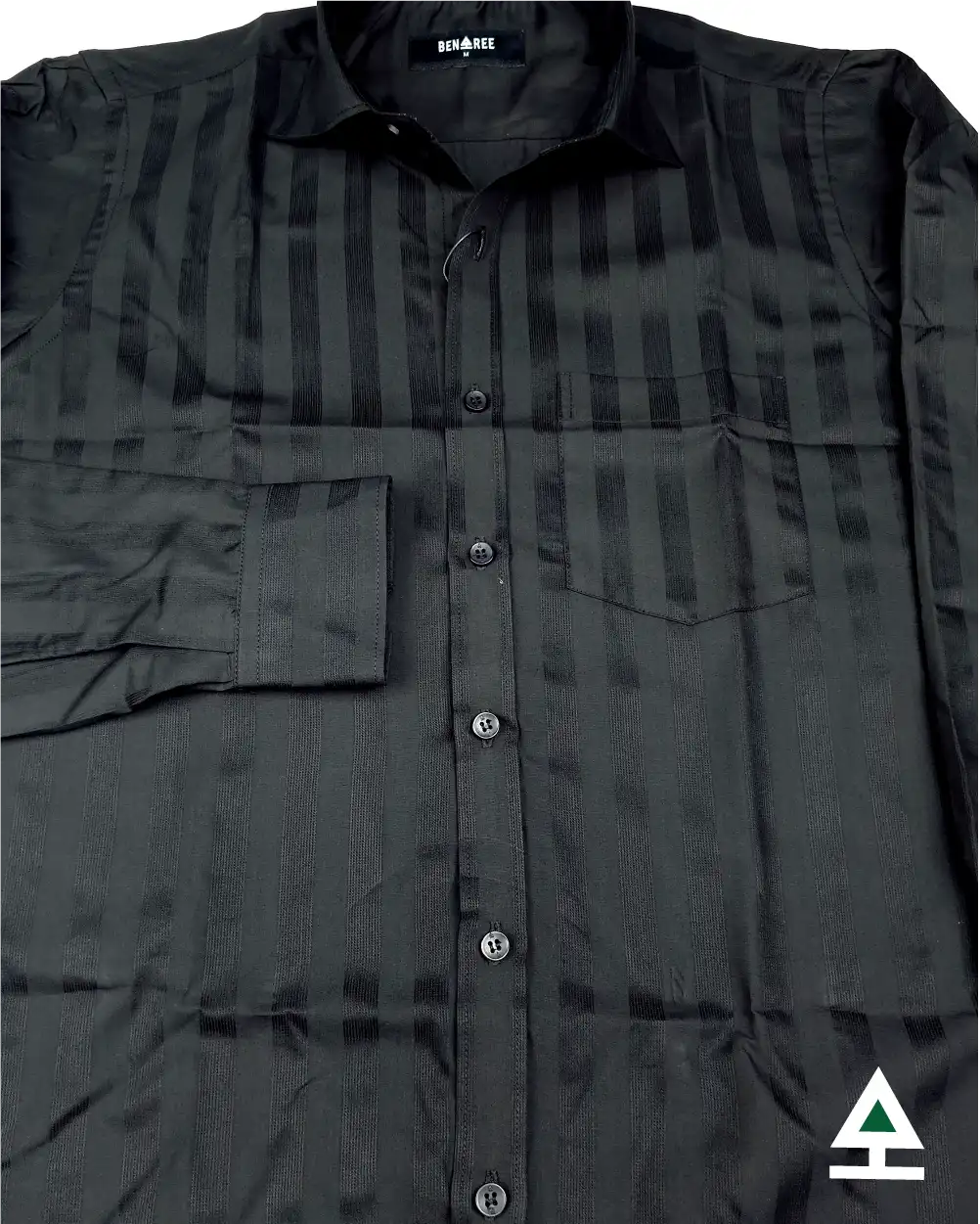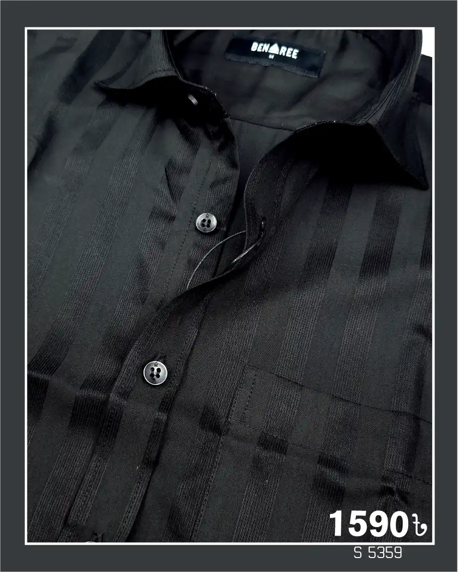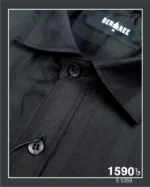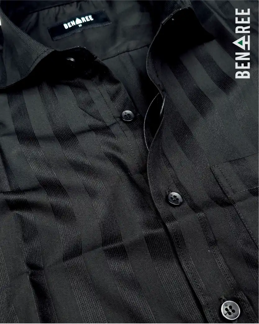 Full sleeve black color formal shirt with vertical stripe on the body.