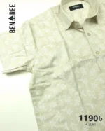 All over print of Grey color on Cream color regular half shirt