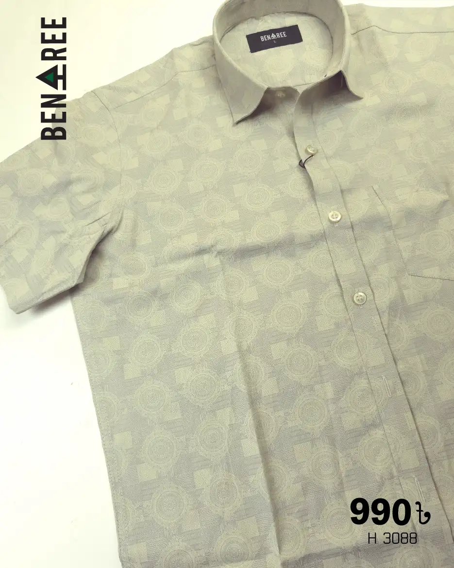All over print on grey color regular half sleeve shirt