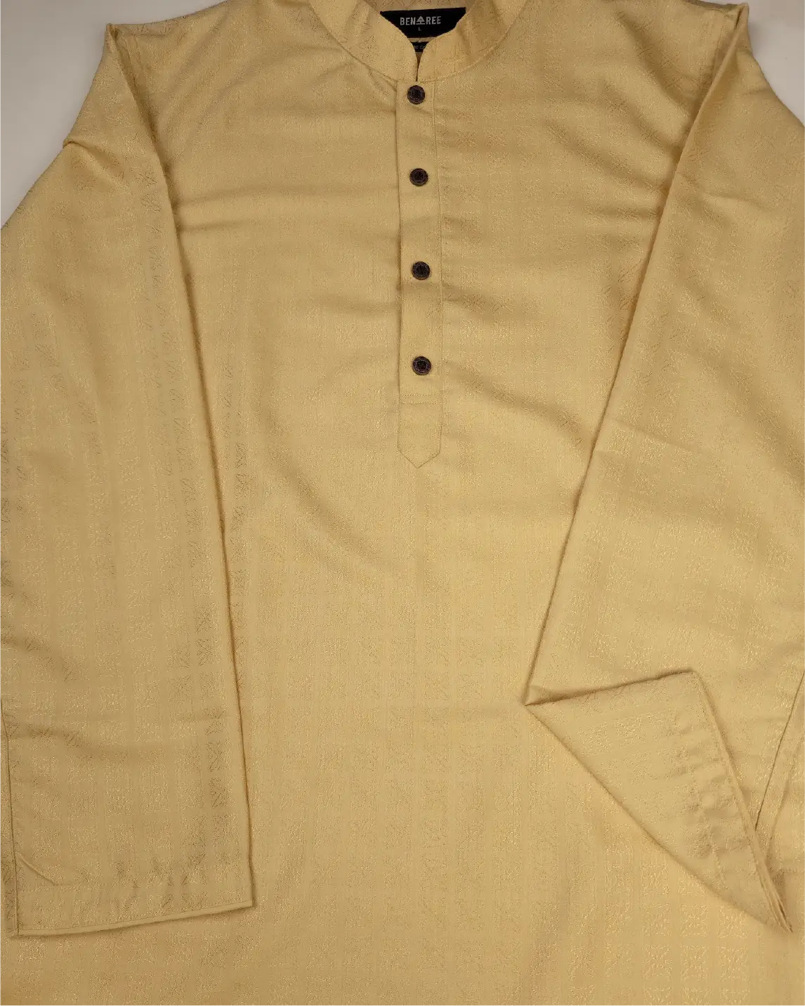 Crafted from premium imported fabric, this Panjabi features a refined all-over body pattern that adds depth and character without excessive embellishment. The design is woven/engineered into the fabric itself, creating a sophisticated texture and visual richness.