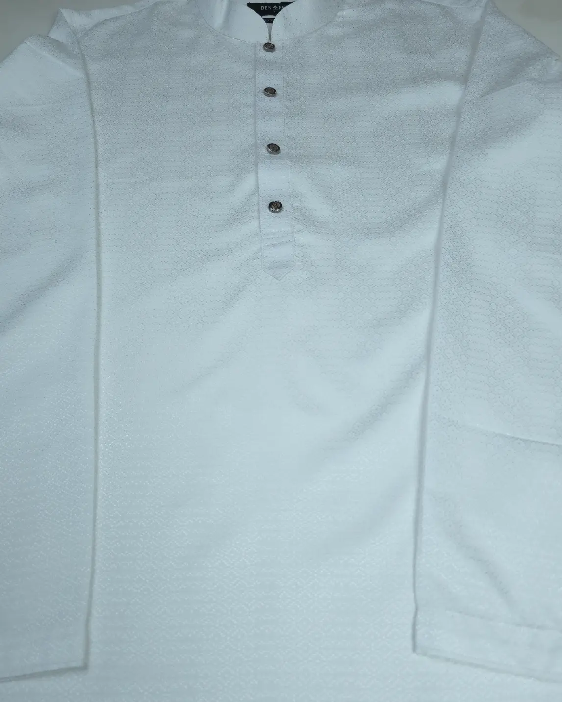 Crafted from ultra-soft premium cotton fabric, this high-segment white Panjabi embodies timeless elegance and refined simplicity. Designed for men who value sophistication, the fabric offers a smooth hand-feel, breathable comfort, and a naturally graceful drape.