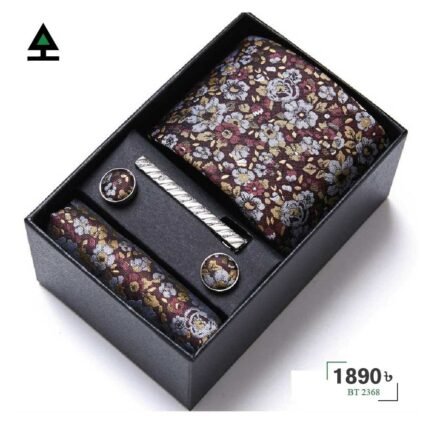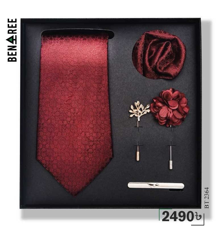 1 pc neck tie, 1 pocket square, 1 tie clip, 2 brooch pin