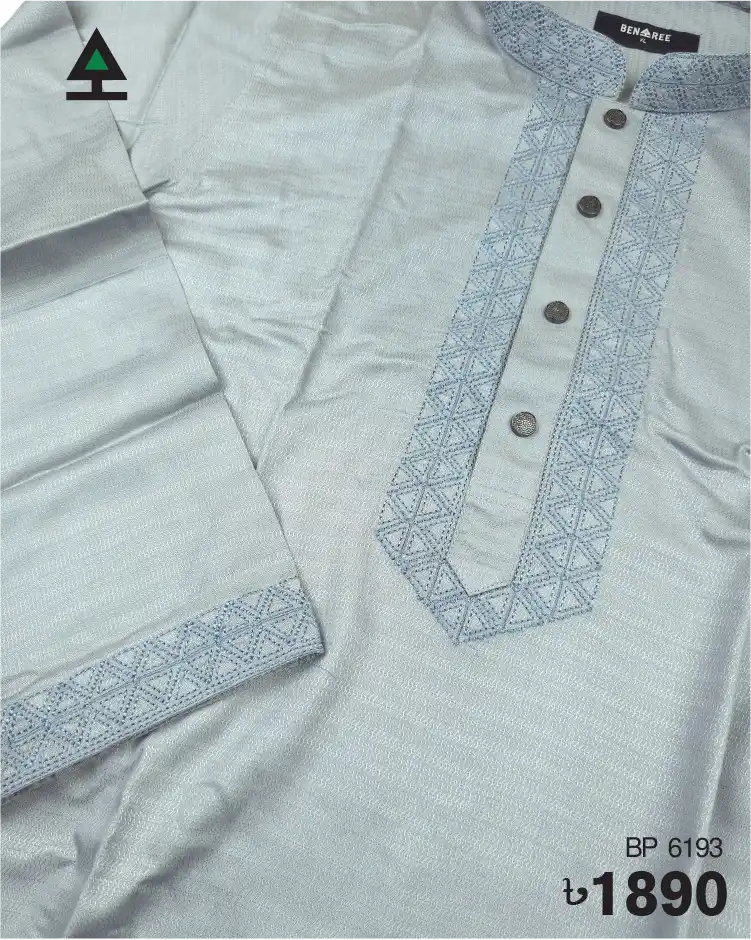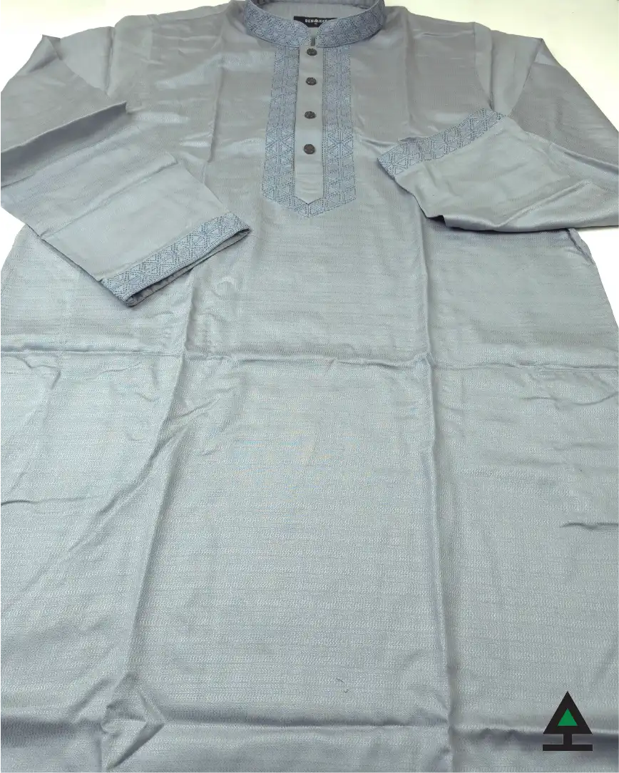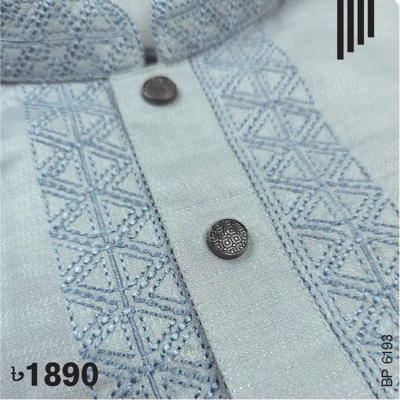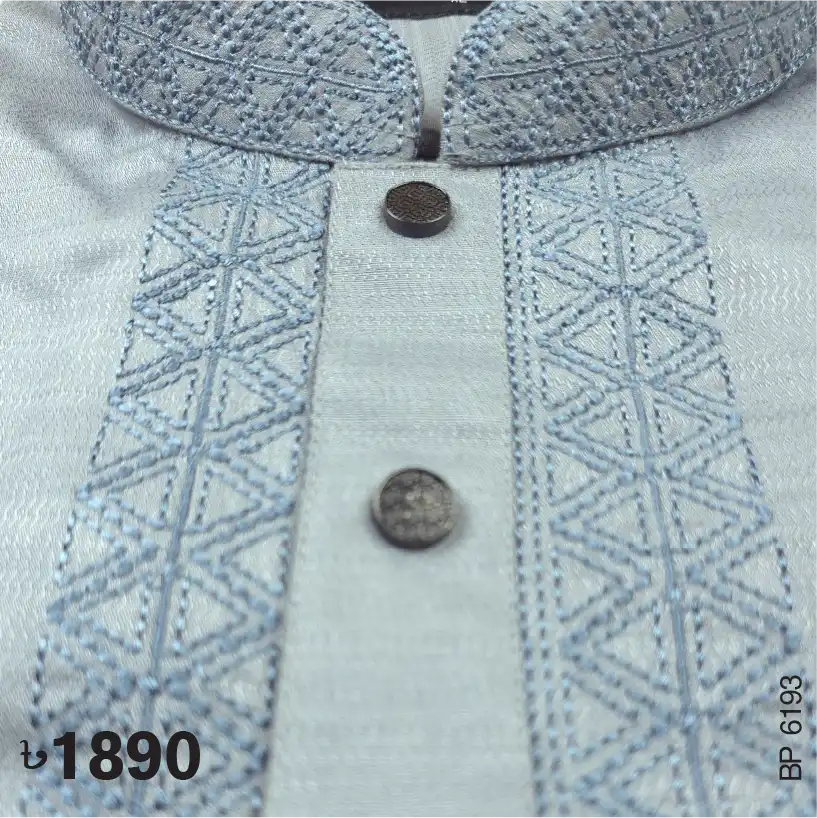 Fine embroidery on neck, cuff & plate of Lava Grey color Panjabi. Push button to complement the design.