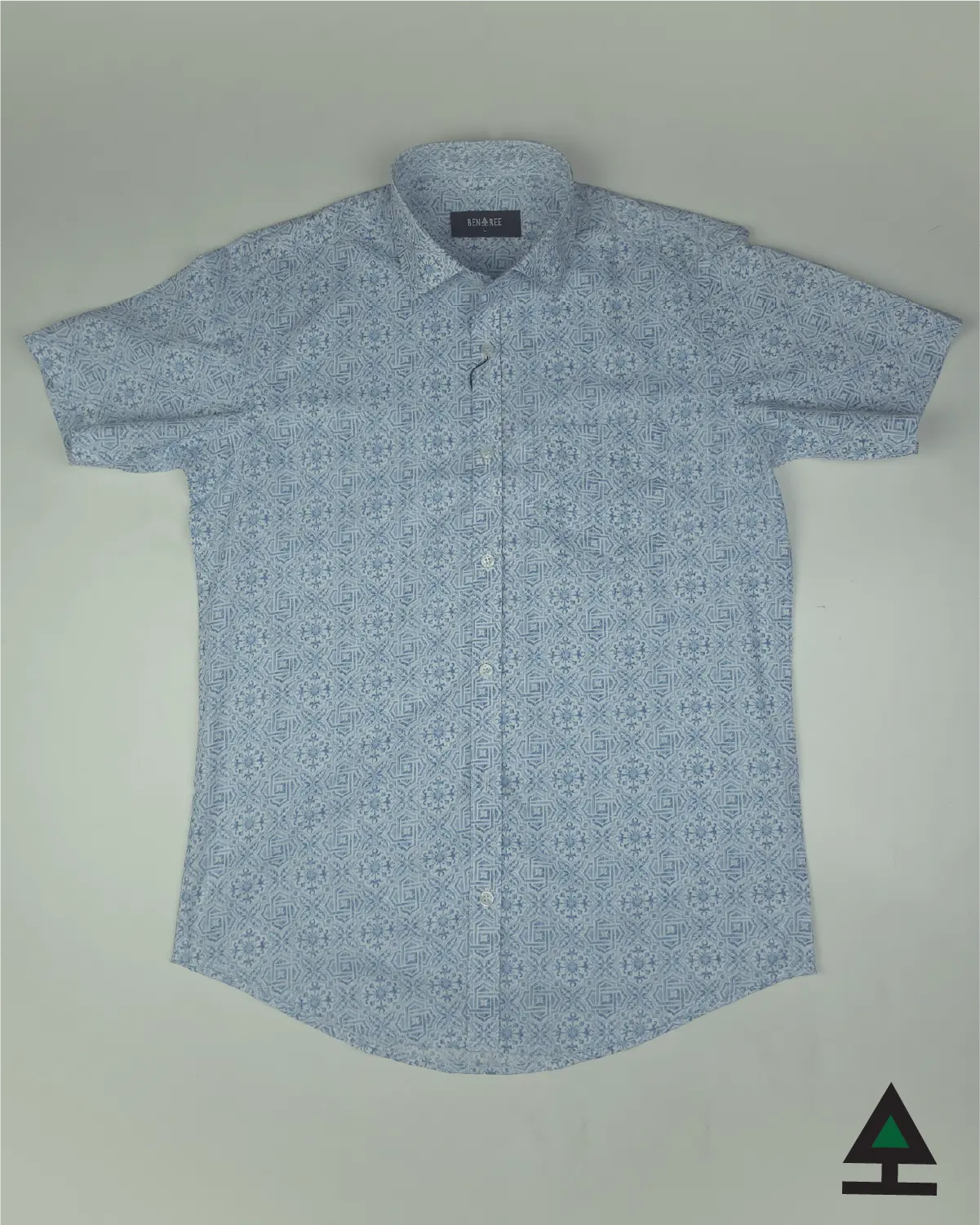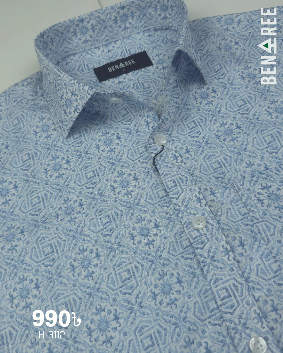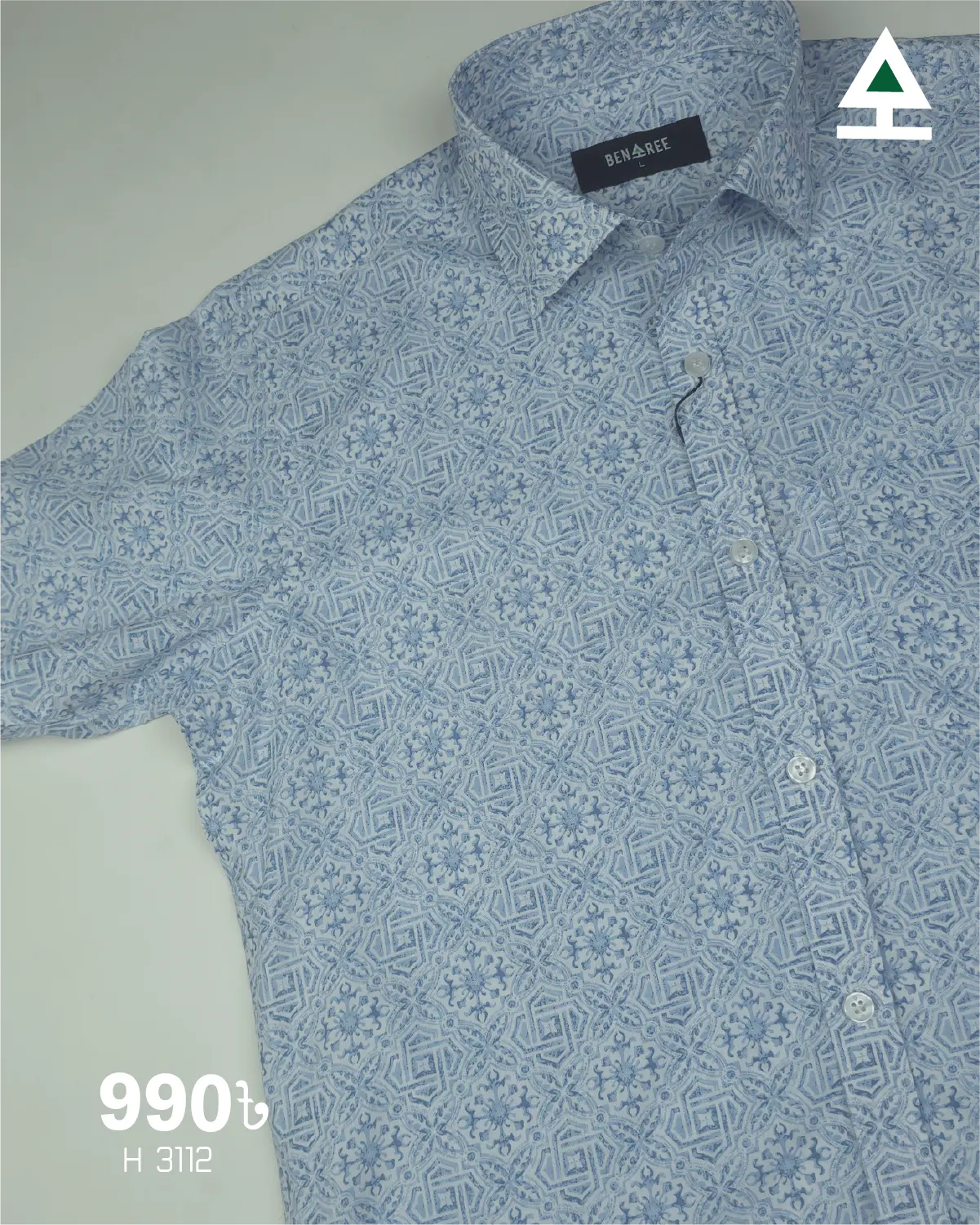 White & Light Blue Half Sleeve Shirt- 23H 3112