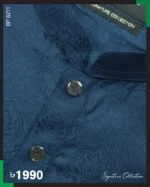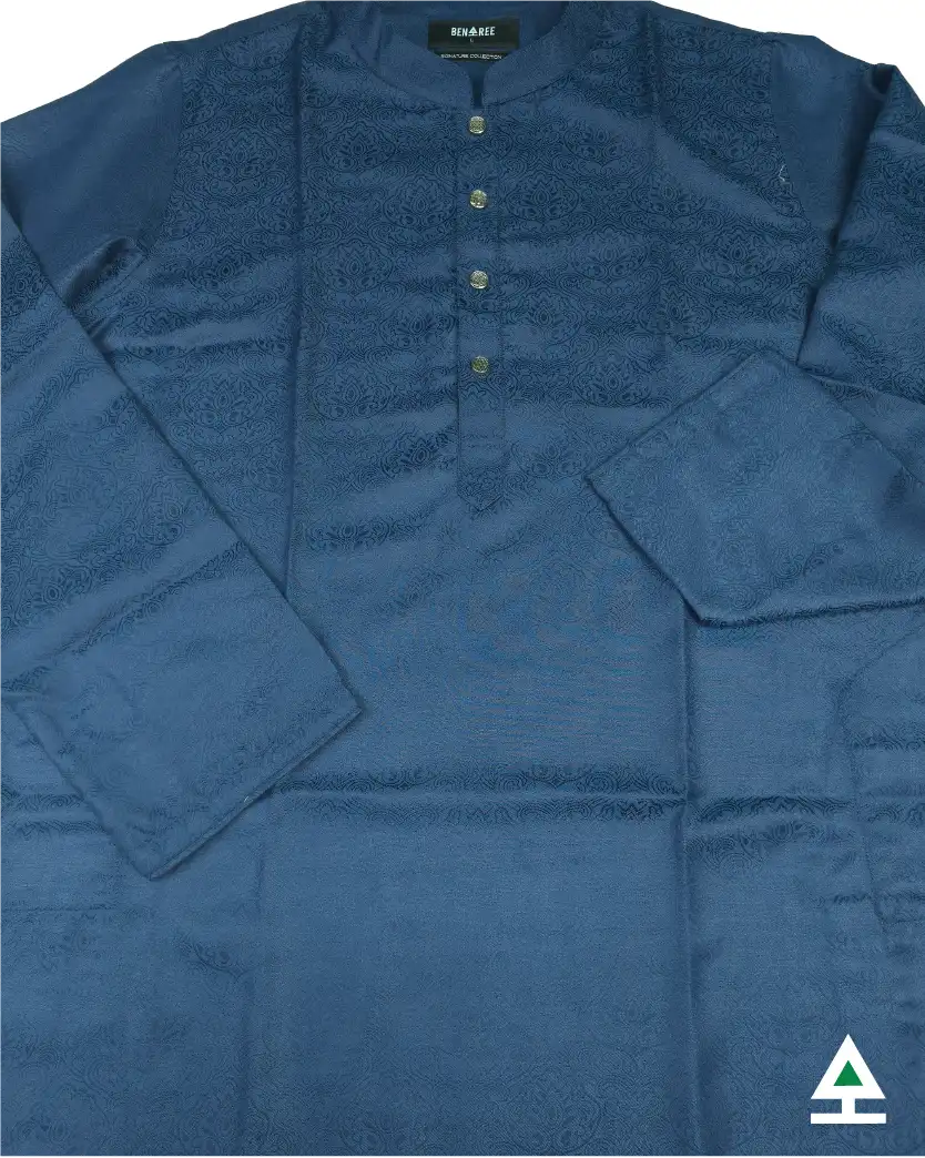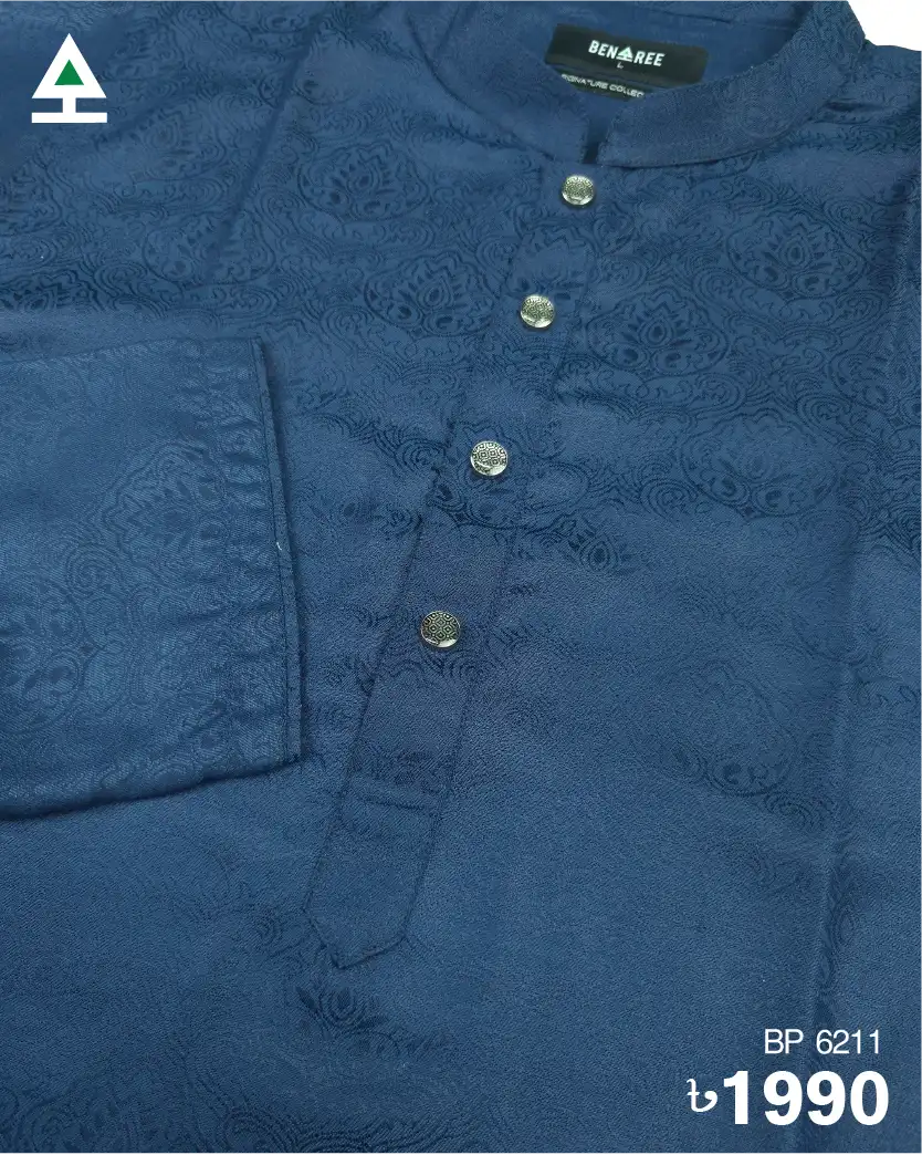 Kalka based design work on navy blue panjabi. Push button to complement the design.
