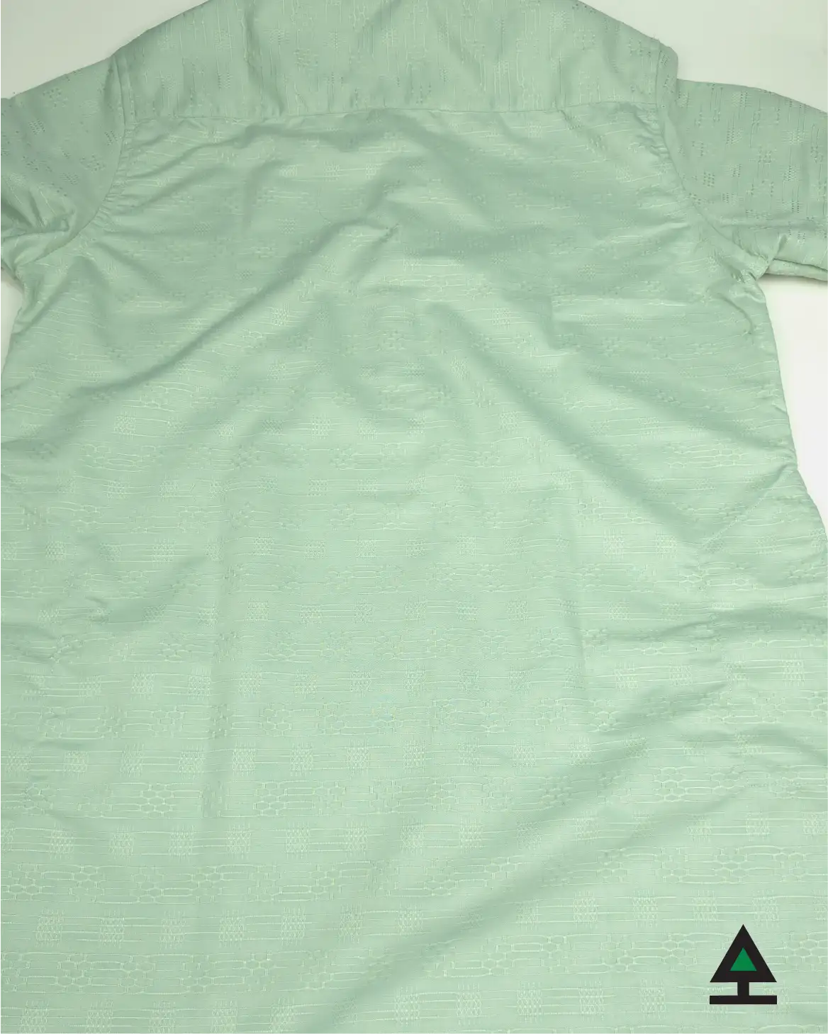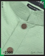 Sophisticated on color design on light green color panjabi. Metal push button in the plates.