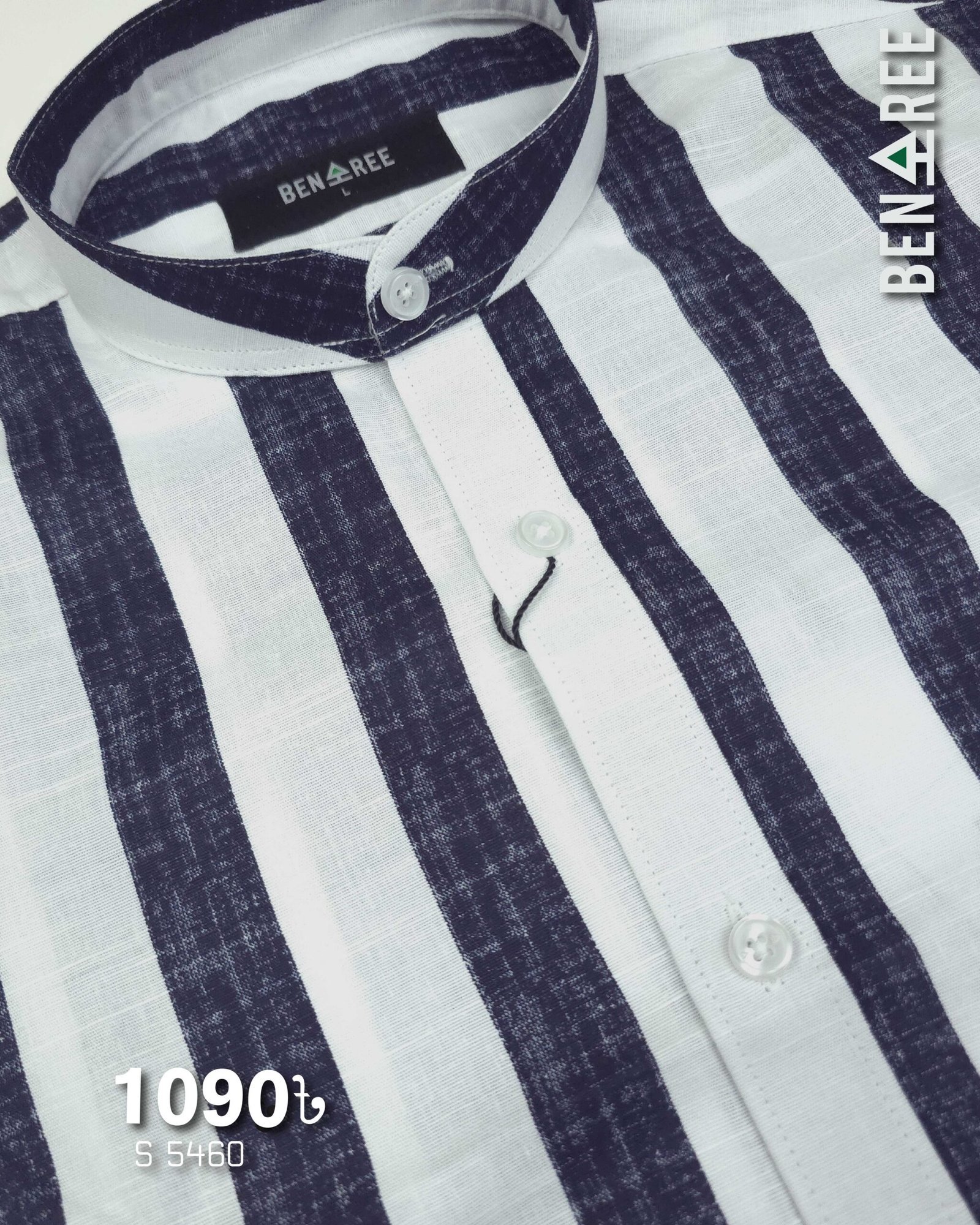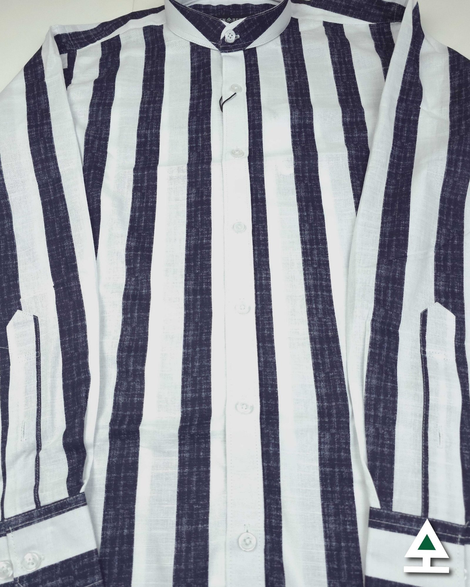 Be the first to review “White and navy blue Ban Collar Shirt – 23S 5460”