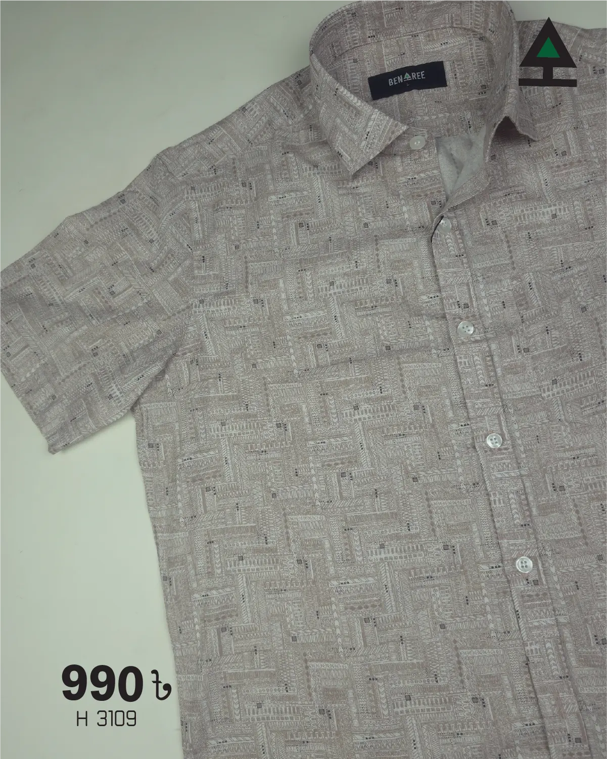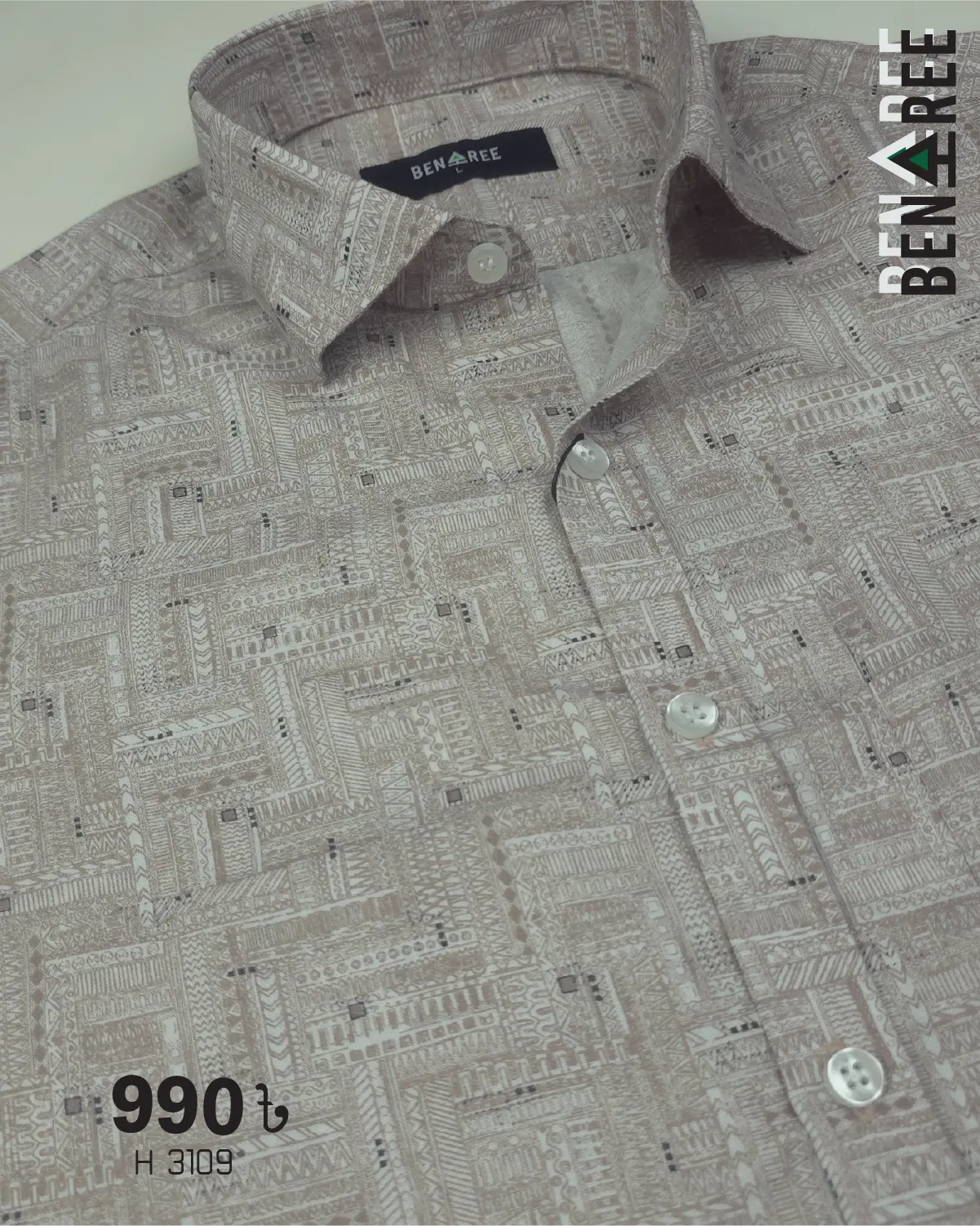 Be the first to review “White & Soft Brown Half Sleeve Shirt- 23H 3109”
